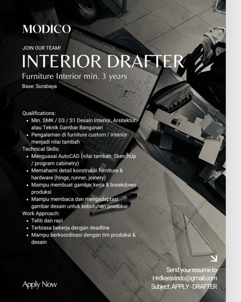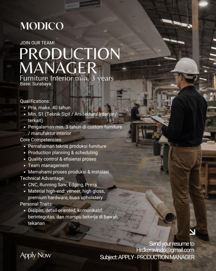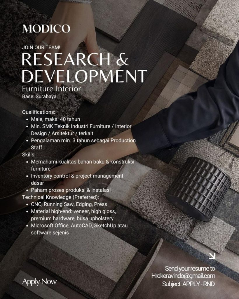 Drafter / Costing Estimator, PPIC Specialist, R&D Manager – Majati Furnitur